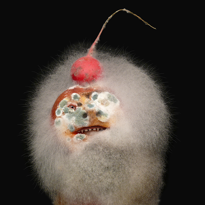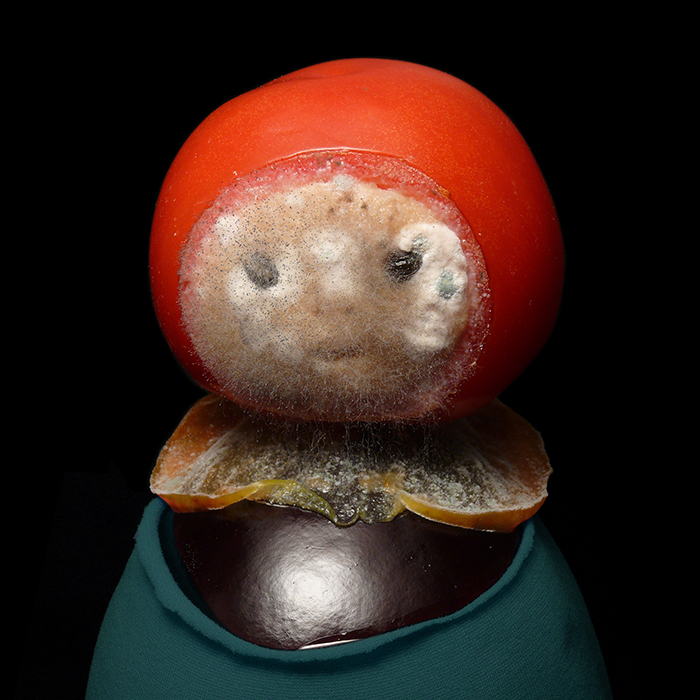 N.M.N. is a partecipatory project. The co-authors of the works are not humans, but infinitely tiny microorganisms: fungi of mould. The individuals portrayed in the N.M.N. series reject any kind of traditional definition in terms of gender, race or species. Identity is viewed as the result of a collective and interactive process, and as a transitory concept: every image captures a special and unrepeatable moment of the figure’s constant transformation. The N.M.N. portraits are not meant to refer to concepts such as decomposition and vanishing, but to celebrate the wonderful, unpredictable disorder generated by biological processes.